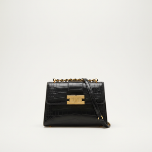 Czarna Torebka Skóra Krokodyla Elegancka z Zapięciem