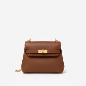 Torebka Skórzana Brązowa Elegancka z Zapięciem