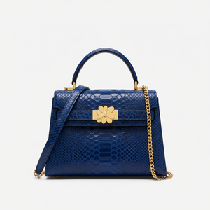 Niebieska Torebka Damska ze Złotymi Akcentami - Elegancka